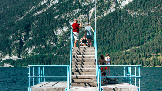 5 Am Strandbad Pertisau in den Achensee rutschen oder springen