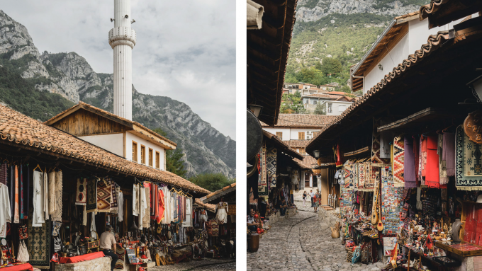 Zugegeben, die Anfahrt nach Kruja ist aufgrund der sich eng windenden und viel befahrenen Hauptstraße etwas müßig, die Aussicht lohnt sich aber: Kruja liegt am westlichen Hang des Skanderbeg-Berges und an guten Tagen kannst du bis zum Meer schauen. Highlights in Kruja sind die Basarstraße aus dem 19. Jahrhundert und die Festung aus dem 12. Jahrhundert. Sie gilt als eines der bedeutendsten Gebäude Albaniens, da Mitte des 15. Jahrhunderts der albanische Fürst und Militärkommandant die Stadt gegen die vordringenden Osmanen verteidigte. Für einen Besuch der Stadt musst du ansonsten nur wenige Stunden einplanen, da Kruja ansonsten nicht viel Sehenswertes hergibt.