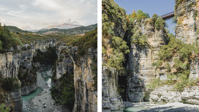 Die Osum-Schlucht ist eines der schönsten landschaftlichen Highlights in Albanien. Entlang der bis zu 80 Meter hohen Steilwände schlängelt sich auf knapp 13 Kilometern Länge der türkisfarbene Fluss Osum. Im Frühjahr, nach der Schneeschmelze in den Gebirgen, ist der Wasserstand so hoch, dass du Rafting- und Kanutouren über den Fluss machen kannst. Im noch warmen Spätsommer und Frühherbst dagegen ist es möglich, gefahrenfrei durch die Schlucht zu wandern und an Canyoning-Touren teilzunehmen. Ein unglaubliches Erlebnis! Unser Tipp: Wenn du von der Osum-Schlucht weiter nach Përmet fahren möchtest, brauchst du einen Geländewagen mit Allrad-Antrieb; die Straßen im Gebirge sind mit normalen Fahrzeugen nicht befahrbar. Alternativ nimmst du aber einfach die Straße zurück nach Berat und fährst entspannt die gut ausgebaute SH74 bzw. SH75 nach Përmet.