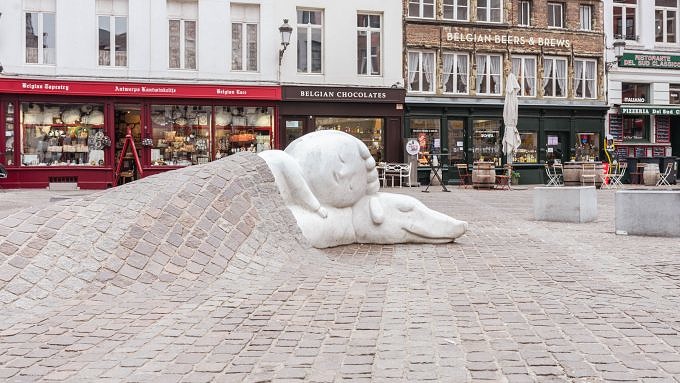 Direkt an der Liebfrauenkathedrale findest du die Figuren Nello und Patrasche, die in liebevoller Umarmung auf den Pflastersteinen liegen. Die Skulptur des Künstlers Batist Vermeulen zeigt die Protagonisten des englischen Romans "A Dog of Flanders", der 1872 veröffentlicht wurde und vor allem außerhalb Belgiens Berühmtheit erlangte. Im Roman schließt der arme Waisenjunge Nello Freundschaft mit dem Straßenhund Patrasche. Zusammen erkunden sie Antwerpen, besuchen die Liebfrauenkathdrale und bewundern die Gemälde von Rubens.