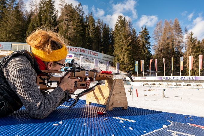 Am Biathlon-Schnupperkurs können alle Menschen ab 16 Jahren teilnehmen. Wenn du als Familie im Urlaub bist, könnt ihr gemeinsam einen zweistündigen Familienkurs besuchen oder die Kinder alleine beim Langlauf und Biathlon Kids Camp anmelden. Wenn du nach deinen ersten Versuchen Lust auf mehr bekommen hast, gibt es in der Arena die Möglichkeit, eine dreiteilige Ausbildung zum*r Biathleth*in zu absolvieren, entweder im Camp oder bei drei Einzelterminen. Nach dem erfolgreichen Abschluss hast du dann die Möglichkeit, dir jederzeit ein Gewehr leihen zu können und selbstständig in der Arena zu trainieren.
