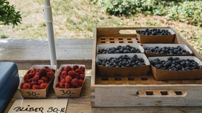 Die Bornholmer*innen haben eine enge Bindung zur Natur und überall auf der Insel werden Lebensmittel entweder nachhaltig angebaut oder sie wachsen in Hülle und Fülle am Wegesrand. In Cafés, Supermärkten und kleinen Spezialitätenläden findest du daher jede Menge lokale Produkte von kleinen Produzent*innen. Aber nicht nur dort solltest du für deinen Urlaub einkaufen gehen – gerade im Sommer findest du am Wegesrand immer wieder kleine Stände, wo Privatpersonen Lebensmittel wie Kartoffeln, Zucchini, Kürbisse, Äpfel, Heidelbeeren oder Himbeeren auf Vertrauensbasis verkaufen, denn meistens gibt es keine*n Verkäufer*in.