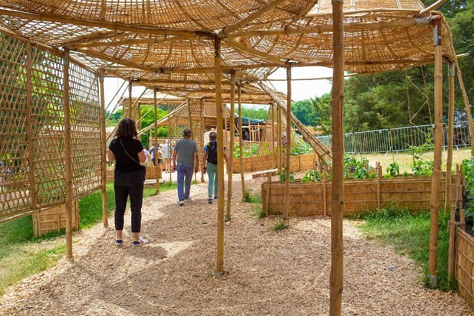 Das Kollektiv Britto Arts Trust aus Bangladesch/Dhaka zeigt gleich mehrere Beiträge in der documenta Halle. Du findest hier eine weit verzeigte Landschaft – bestehend aus Basar, Garten und Küche –, in der es insbesondere um Lebensmittel und Ernährungspolitik, aber auch um Gemeinschaften geht, die durch eine immer weiter voranschreitende Industrialisierung bedroht sind. Ein ganz besonderes Projekt ist der begehbare Palan im Garten – ein bengalischer Gemüsegarten, der den Pak Ghor, also die Wohnküche der Familie, speist. In Kassel serviert Britto leckere Pak-Ghor-Gerichte und will so Menschen mit Migrationshintergrund zusammenbringen, um Mahlzeiten zuzubereiten und neue Gedanken über die Verwertung von Lebensmitteln anzuregen. Präsentiert werden 100 Esskulturen von 100 Nationen an 100 Tagen. Cool!