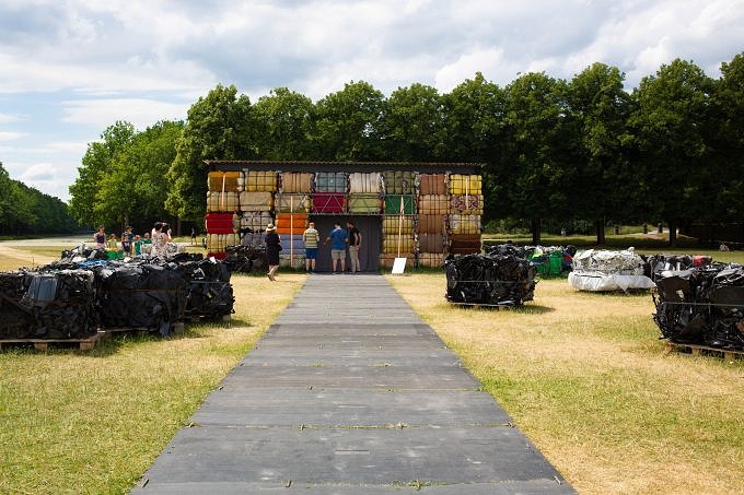 Auf der Karlswiese unweit der prächtigen Orangerie findest du eine große Müllhalde inmitten der Natur. Es ist spannend zu beobachten, wie verstört und desillusioniert die Parkbesucher*innen vor dieser grotesk anmutenden Installation aus Abfällen und Müll stehen bleiben und versuchen zu begreifen, was es denn damit wohl auf sich haben könnte. Die Antwort bekommst du, wenn du den aus Müllcontainern gebauten Innenraum betrittst. Dort zeigt das ostafrikanische Nest Collective einen Film, der sich mit dem Thema Müll sowie den damit verbundenen Ausbeutungsverhältnissen beschäftigt. Denn es ist der Globale Norden, der seinen giftigen Elektroschrott, aber auch ausrangierte Secondhand-Kleidung in die weniger industrialisierten Länder abschiebt und damit für erhebliche Umweltauswirkungen vor Ort sorgt. Die Arbeit "Return to Sender" ist ein Must See auf der documenta fifteen.
