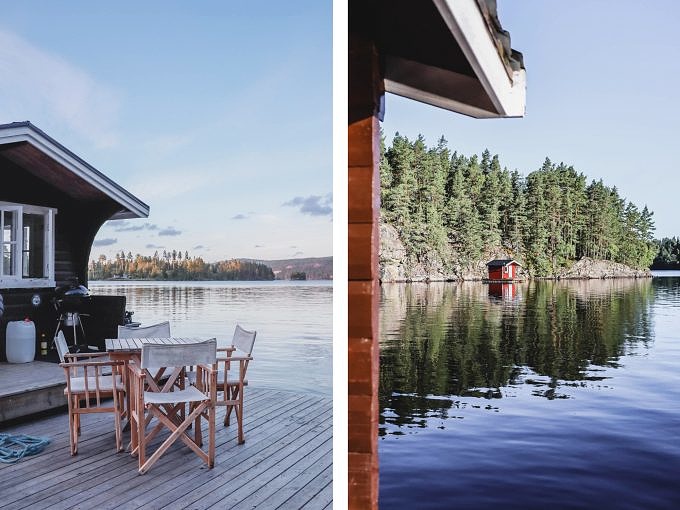 Abends wird es besonders gemütlich und ich besuche die wohl schönste Sauna meines Lebens – auf einem eigenen Floss hat Ove sie in die Bucht gefahren. Besonders schön ist, dass ich nach dem Saunagang im kleinen roten Häuschen direkt in den kalten See hüpfen kann. Von einem Haus zum anderen komme ich übrigens mit einem Schleppboot, das sich am Haus befindet – oder man nutzt das SUP, das an jedem Boot an der Seite angebracht ist. Wer noch mehr vom See entdecken will, kann sich bei Ove auch ein Kajak ausleihen. Ich bin aber glücklich damit, in der ruhigen Bucht zu entspannen und zu sehen, wie langsam Tausende Sterne am Himmel erscheinen.