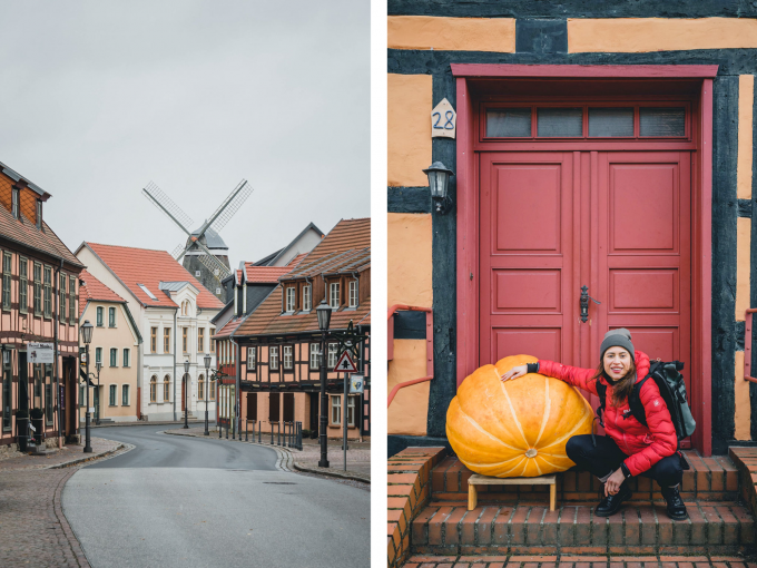 Nur 4 Minuten von der Schamper Mühle entfernt liegt die kleine Stadt Röbel. Auch in Röbel gibt es eine Windmühle, wenn auch eine nicht ganz so hübsche wie in Gotthun. Dafür erscheinen die vielen bunten Fachwerkhäuschen wie aus dem Bilderbuch, sodass du dich hier wie in einem pittoresken holländischen Dorf fühlst.
