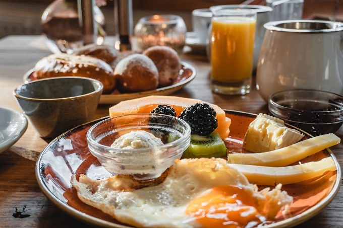Idealerweise findet die auch ihren Weg in den morgendlichen Frühstücksraum. Nachdem ich mich also am Buffet mit allem eingedeckt habt, was mein Herz begehrt – seien es die besten Quarkbällchen, leckerer Käse aus der Region, diverse Sorten Tee oder (glutenfreies) Müsli –, genieße ich die wichtigste Malzeit des Tages, während mir die Sonnenstrahlen um die Nase tanzen.