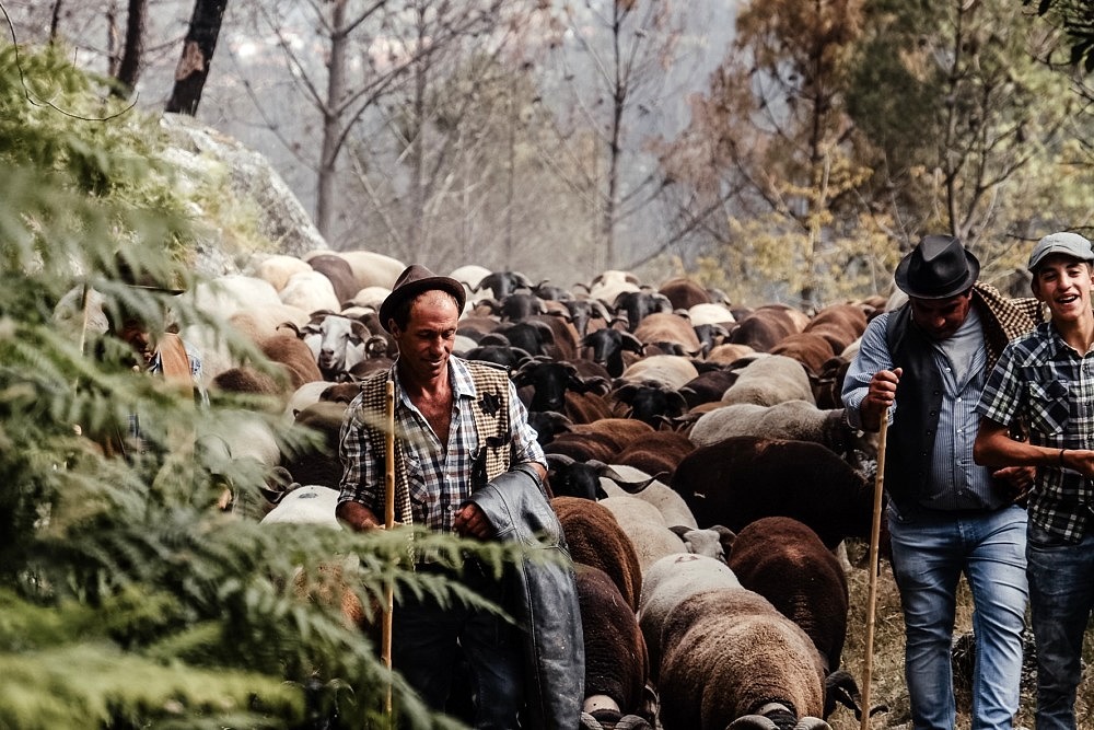 Im kleinen Bergdorf herrscht angespannte Vorfreude unter den Menschen. Die Familien der Hirten, Nachbar*innen und Besucher*innen aus anderen Teilen Portugals sind früh an den Rathausplatz gekommen, um die Transhumanz zu begleiten. Es ist der Höhepunkt zu Sommerbeginn und eine uralte Tradition, die man mit viel Engagement aber auch Freude am Leben erhalten will. Als das Festa da Transumância 2013 als ein Projekt der Aldeias de Montanha erstmalig als neuzeitliches Fest organisiert wurde, waren es gerade mal fünf Hirten, die ihre Herden gemeinsam in die Berge der Serra da Estrela trieben. Sechs Jahre später nehmen bereits deutlich mehr Hirten am Fest teil und treiben mittlerweile mehr als Tausend Schafe und Ziegen in die Berge.