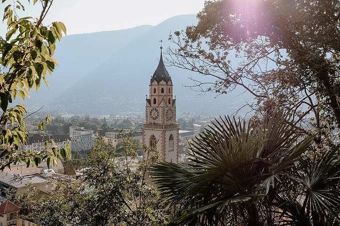 Auffallend grün ist Meran, viele Parkanlagen ziehen sich durch die Stadt. Die Botanischen Gärten von Schloss Trauttmansdorf ist etwa die bekannteste. Nicht weniger grün und mit tollem Ausblick über die Stadt, empfehle ich dir in jedem Fall einen ausführlichen Spaziergang entlang des Tappeinerweg. Über 150 Jahre ist die Promenade bereits alt und verläuft über den Dächern der Stadt. Vor allem in der Abendsonne ist der Weg ein echtes Highlight für sich und zeigt Meran nicht nur in der goldschimmernden Abendsonne. Auch die umliegenden Berge sind in warmes Licht getaucht und geben ein tolles Panorama ab.