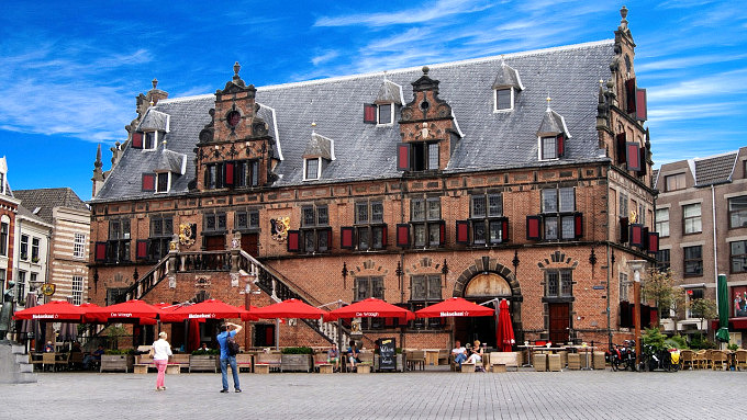 Nimwegen, auf Niederländisch Nijmegen, liegt nicht nur nahe der deutschen Grenze, es ist auch die älteste Stadt Hollands. Dementsprechend gibt es hier jede Menge historische Gebäude, jahrhundertealte Plätze und die älteste Einkaufsstraße. Die Lange Hezelstraat ist gesäumt von kleinen Geschäften, Cafés und Restaurants – und sie führt dich geradewegs zum wunderschönen Marktplatz. Hast du das Zentrum erkundet, gönn dir bei schönem Wetter eine Pause im Kronenburgerpark oder an den Stränden der Waal – dort kommt echtes Urlaubsfeeling auf. Danach ziehst du am besten weiter zum Honigcomplex. Auf dem ehemaligen Fabrikgelände sind heute alternative Werkstätten, Geschäfte, Cafés und Restaurants beheimatet. Wer abends Lust auf ein Konzert hat, der schaut am besten im Doornroosje vorbei.