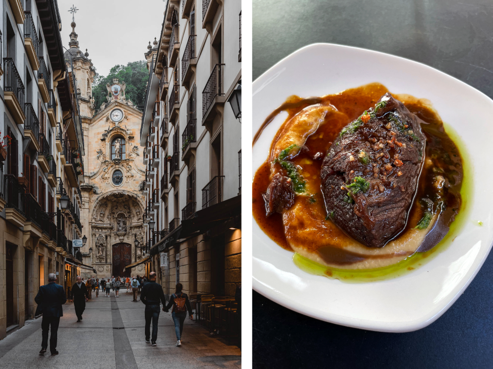 Zum Mittag kehre ich in das vegane Café OhBaba ein, in dem es ausgefallene Toasts, Salate und Kuchen gibt – alles selbst gemacht und sehr lecker. Danach laufe ich zum anderen Ende des Strandes und nehme die Standseilbahn hoch zum Monte Igueldo (Hin- und Rückfahrt 4 Euro), um den beeindruckenden Ausblick auf die Bucht mit der Insel Isla de Santa Clara zu genießen. Abends flaniere ich durch das alte Stadtzentrum und esse Pinxtos (die baskische Variante der spanischen Tapas) bei La Cuchara de San Telmo, das mir von zwei Leser*innen empfohlen wurde.