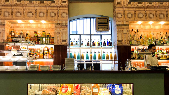 Natürlich ist das Café vom Fondazione Prada ein ebenso besonderes wie die Kunst, die im Fondazione Prada ausgestellt wird. In Anlehnung an Mailänder Cafés aus den 50ern und 60ern hat hier der Filmemacher Wes Anderson ein Setting kreiert, dass den Besuchern direkt das Gefühl gibt, in einem typischen Filmset Andersons zu stehen. Die poppig bunten Farben und das Interieur, wie historische Jukeboxen oder Flipperautomaten, bestimmen den Look. Kleine Sitznischen und große Vitrinen sind die fotografischen Highlights. Die typische Erschöpfung nach dem Betrachten großartiger Kunst kann mit verschiedensten frischen Paninis, Kaffeevarianten und Cocktails erfolgreich besiegt werden. Aber auf diese Idee kommt man nicht als einzige Person. Daher gilt: anstehen und warten.