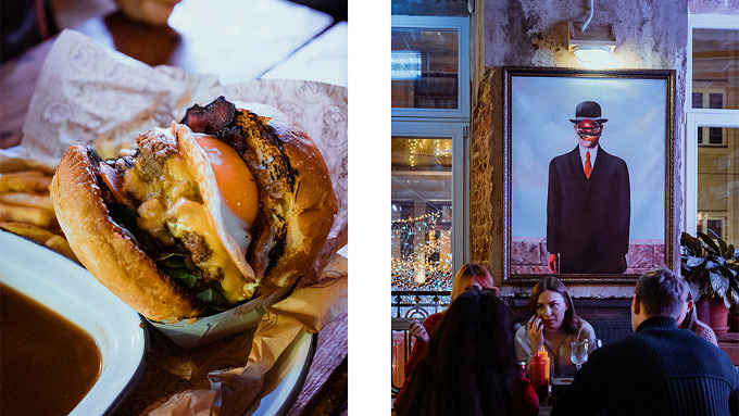 Das Epic Cheeseburger Cafe macht seinem Namen alle Ehre. Hier bekommt ihr riesige, triefende Burger, die jeden Hangover heilen. Sehr zu empfehlen ist der Eric Cheeseburger, der mit einem Napf voll Käsesoße zum Tunken serviert wird, sowie der Bad Boy Burger (siehe Bild), aus dem ein ganzes Ei sofort in den Mund gestopft werden will. Auch an Veganer wurde mit dem Happy Cow Burger und Salaten gedacht. Und selbst Frühstücken könnt ihr hier. Dann landen Madame Croque, Englisches Frühstück und Shakes auf dem Tisch. Yummy!