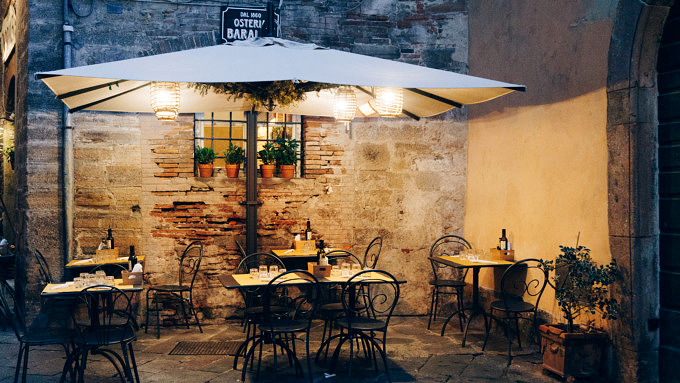Pasta und Pizza bekommst du in Italien an jeder Straßenecke. Wenn du echte toskanische Küche kosten möchtest, schau unbedingt in der Osteria Baralla vorbei. Bebilderte Touristenmenüs gibt es in dem modernen Backsteingewölbe nicht. Stattdessen hast du die Chance, inmitten italienischer Familien zu sitzen, das ausgelassene Treiben zu beobachten und köstliche, regionale Gerichte in unaufgeregter Atmosphäre zu kosten. Die Speisekarte wechselt je nach Saison, und die Antipasti – die locker für zwei Personen reichen – solltest du dir auf gar keinen Fall entgehen lassen. Komm rechtzeitig oder reserviere einen Tisch, das Lokal ist sehr beliebt.
