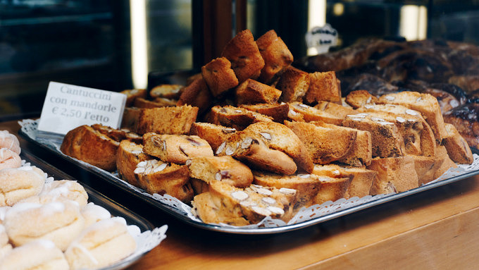 Gegen das Mittagstief nach einem Morgen voller Sightseeing hilft am besten ein köstlicher Espresso und einige kleine Biscotti. Wenn du diese typisch italienischen Kekse bisher nur als staubtrockene Variante kennst – die du, um nicht an Atemnot zu ersticken, im Kaffee ertränken musst – solltest du unbedingt in der Pasticceria Dianda in Lucca vorbeischauen. Denn hier gibt es frisch gebackene Cantuccini und zuckrige Teilchen, die so butterzart sind, dass sie auf der Zunge zergehen und so gar nichts mit dem abgepackten krümeligen Gebäck zu tun haben, das in deutschen Supermärkten zu finden ist.