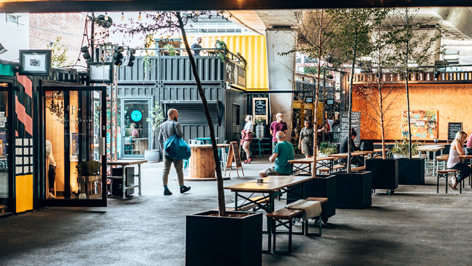Direkt neben der Manchester Metropolitan University befindet sich das Hatch, ein bunter Pop-Up-Space, der aus alten Schiffscontainern besteht. Hier könnt ihr bei verschiedene kleinen lokalen Händler nachhaltige Waren kaufen. Richtig cool ist zum Beispiel der Shop von Sneaker Pharm, wo ihr eure alten Sneaker wieder reparieren lassen könnt. Dazu gibt es verschiedene Restaurants und Bars – hier sticht vor allem The Hanoi 75 raus, ein alter Doppeldecker-Bus, der in ein vietnamesisches Zuhause umgewandelt wurde. Im Hatch findet außerdem regelmäßig Events wie Konzerte, Stand-up oder Yoga-Klassen statt.