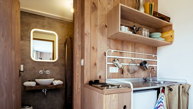An einem sanft zum Wasser abfallenden Hang stehen die würfelförmigen Holzhäuser von SEE 31, in denen man keinen Komfort missen muss. Von ihnen blickt man aus großen Glasfenstern auf die umliegenden Berge, die Blumenwiese mit Obstbäumen und den schönen Badesee. Nicht nur im Sommer, auch im Winter lässt es sich hier gut aushalten. Dann sorgt nach einem Tag im Schnee vor allem die eigene Sauna im großzügigen Badebereich der Lofts sowie Wärmflaschen und der Kaminofen im Wohnbereich für die ersehnte Entspannung und Wärme. Wer mehr Erholung sucht, dem wird gerne der Kontakt zu einer Wohlfühl- und Lava-Stone-Masseurin vermittelt. So steht einem entspannten Urlaub, egal zu welcher Jahreszeit, nichts mehr entgegen.