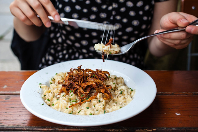 Apropos Hütteneinkehr: Auch beim Essen kannst du deinen Winterurlaub in Sachen Sättigungsgefühl nachhaltig gestalten. Achte darauf, in Hütten und Restaurants einzukehren, die lokale Produkte verwenden und frage dich: Muss es immer Fleisch sein? Die alpine Küche kennt viele Klassiker, die von Haus aus vegetarisch sind, zum Beispiel Südtiroler Spinatknödel, Schweizer Gerstensuppe oder der österreichische Kaiserschmarrn.