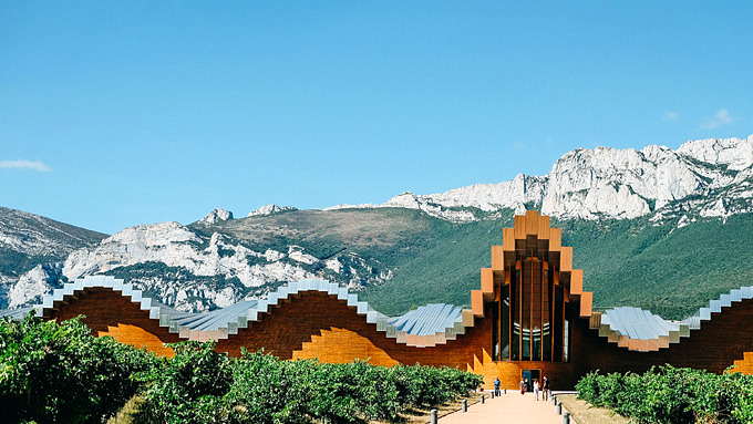 Das Weingut Bodegas Ysios liegt im Norden Logroños inmitten von La Rioja und bietet gereifte Qualitätsweine in limitierter Edition von gerade einmal 1000 bis 1200 Flaschen pro Jahr an. Hier kommt übrigens 100 Prozent Tempranillo – die meist angebaute Traube in der Region – in die Flasche, und zwar von einem Rebstock, der über 100 Jahre alt ist. Das Besondere am Weingut Ysios ist, dass hier drei verschiedene Terroirs gegeben sind. Im Norden sind die Reben von den umliegenden Bergen vor dem Klima des Atlantiks geschützt, im Süden liegt der Ebro. So eine Tour übers Weingut und durch den Weinkeller zeigt, wie viele Schritte eigentlich für eine Flasche guten Weins nötig sind. Auch das Gebäude selbst ist ein Highlight, dass von dem spanisch-schweizerische Architekt Santiago Calatrava entworfen ist, der unter anderem auch das berühmte Oculus in New York geschaffen hat. Bei der Form der Bodegas Ysios hat er sich von der Natur inspirieren lassen und wollte ein Gebäude schaffen, das sich perfekt in diese einfügt.