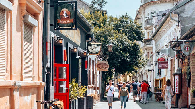 Woher diese Straße in Novi Sad ihren Namen hat, ist klar, wenn du dir ihre Lage auf einer Karte anschaust. Die Dunavska ist die Straße, die aus der Altstadt zur Donau, serbisch Dunav, führt. Eine typische Altstadtstraße, die zum Schlendern und Flanieren einlädt. Die Gebäude sind pastellfarben gestrichen, es gibt jede Menge malerische Altbauten, Cafés und Restaurants, die Sonnenschirme vor der Tür aufgespannt haben – Urlaubsfeeling pur. Schleck ein Eis von Moritz Eis und bummel Richtung Donau. Entlang der Straße findest du die ältesten Geschäfte Novi Sads wie zum Beispiel das Ivkovic Atelje. Ursprünglich ein Buchbinder, werden hier nun Lederwaren aller Art verkauft. Achte unbedingt auch auf die Innenhöfe, durch deren kleine Passagen du zur Parallelstraße Daničićeva gelangst und in denen sich viele Geschäfte verstecken. Am Abend treffen sich die Einwohner*innen in den Restaurants und es kommt richtig Leben auf die Straße.
