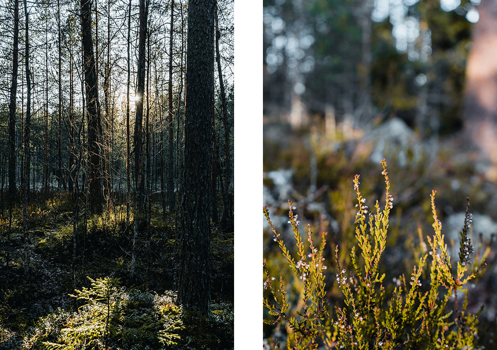 Ich entscheide mich für eine 10 Kilometer lange Wanderung vom Hawkhill quer durch den Wald in Richtung Haltia Naturzentrum. Die Rundwanderwege hier sind alle gut ausgeschildert, sodass man auch ohne Handy-Navigation zum Ziel kommt. Vor allem rund um das Hawkhill stehen die Bäume dicht, surreal grünes Moos wächst auf kleinen Felsvorsprüngen und gerade am Morgen liegt über den Mooren noch ein Dunstschleier. Weit und breit ist hier niemand zu sehen oder zu hören, nur das Rauschen des Windes, das Plätschern kleiner Bäche und hier und da der Gesang eines Vogels. Entlang der Wege befinden sich Plätze zum Grillen oder Campen – eine gute Beschäftigung im Sommer. Wenn im Winter die Seen zugefroren sind und hoher Schnee liegt, kann man hier Schlittschuhlaufen oder Langlaufen.