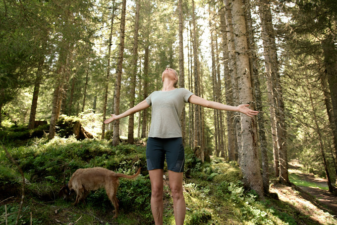 Gleich zu Beginn solltet ihr einmal von dem klaren Heilwasser des Gasteinertales kosten. Auch wenn ihr euch danach schon wie neugeboren fühlt, kann ich euch versprechen, dass noch mehr auf euch wartet. Wenn ihr dem Bachlauf in den Wald folgt, versucht schon mal bewusst ein- und auszuatmen, um den intensiven Geruch der Waldluft wahrzunehmen. Weil unser Geist schnell nervös wird, wenn wir die Bewegungen unseres Körpers verlangsamen, achtet auf die Bewegungen der Natur um euch herum. Währenddessen lasst ihr die Arme kraftvoll und bewusst nach hinten schwingen. Diese Übung weitet euren Brustraum. Dadurch öffnet ihr euch sozusagen dem Wald gegenüber, und eure Bewegungen und der Geist werden freier. Wichtig ist, dass ihr nicht losmarschiert, sondern jeden Schritt bewusst macht. Dafür müsst ihr nicht unbedingt in slow motion wandern, aber ihr solltet in der Lage sein zu spüren, wie jeder Teil eurer Füße den Boden berührt.