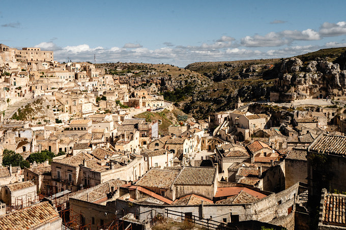 Direkt an der Grenze zur Region Apulien liegt Matera. Eine Stadt, die als eine der ältesten Siedlungen der Welt gilt und für ihre Höhlenwohnungen, die sogenannten Sassi, bekannt ist. Die Wohnungen wurden einfach in die Felswände geschlagen, das Stadtbild sieht dadurch zwar etwas chaotisch, dafür aber sehr pittoresk aus. Aber auch das Flusstal vor Matera, durch das der Fluss Gravina fließt, ist ein echtes Highlight und kann bei einer Wanderung erkundet werden.