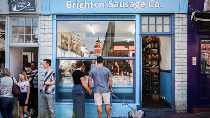 Einzigartig in Brighton ist die Fleisch- und Wurstmanufaktur Brighton Sausage Co. Seit 2006 produzieren Paul Gilks and David Barr Wurstwaren aus Bio-Fleisch von Kühen, Schweinen, Hühnern und Lamm, die ausschließlich aus dem UK stammen. Dabei verwenden sie keine künstlichen Zusatzstoffe. Sogar vegetarische und vagen Würste haben die beiden im Angebot.