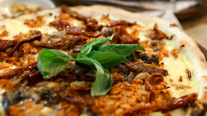 Wer hat eigentlich jemals behauptet, dass vegan Verzicht und wenig Kalorien bedeutet? Im werden massive, fettige und geile Pizzen serviert – und dabei ist alles pflanzenbasiert. Der Teig kommt in drei Varianten: Sauerteig, Hanfmehl-basiert oder glutenfrei. Die Wahl zwischen dem Belag fällt dann schon schwerer: mit Trüffel und Waldpilzen, mit karamellisierten Zwiebeln und Pesto oder doch klassisch als Margarita. Der "Käse" basiert auf Reismilch und ist zum Niederknien. Und wer dann noch Platz im Magen hat, sollte eines der Desserts probieren: Cashew-Tiramisu, Lemon-Cheesecake oder doch lieber eine Oreo-Pizza?