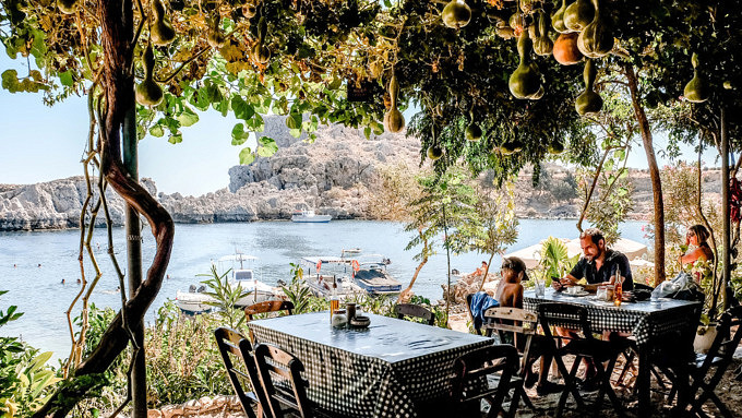 Bei hausgemachtem Tsatsiki und frischem Pita-Brot lässt es sich in der kleinen Taverne in der St. Paul’s Bay das muntere Treiben im Wasser hervorragend beobachten. Die kleine Taverne liegt auf einer kleinen Anhöhe, so dass man die Bucht ideal im Blick hat. Aber auch die Taverne selbst ist ein echter Hingucker, die zwar völlig einfach gehalten und doch voller Charme ist, so dass man gerne öfters als nur einmal zu einem leichten Mittagessen hier hinkommt.