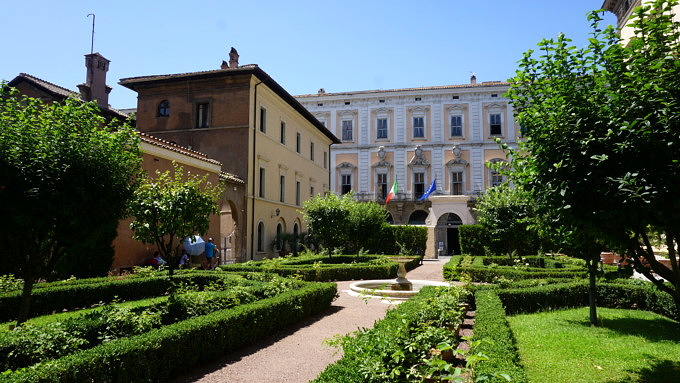 Der Innenhof des Palazzo Venezia ist eine Oase der Ruhe inmitten des Trubels rundum die Piazza Venezia im Zentrum der Stadt. Während sich draußen auf den Straßen Roller zwischen die Autos drängeln und ein nie enden wollendes Hupkonzert stattfindet, kannst du im Innenhof des Palazzo natürlichen Sounds lauschen – Denn in den riesigen Palmen verstecken sich zahlreiche bunte Papageien. Auf den Bänken sitzen viele Italiener*innen, die hier ihre Mittagspause verbringen. Ein wirklich wunderbarer Ort, um zu entspannen.