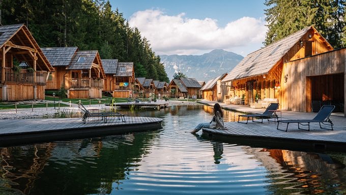Im Ribno Luxury Glamping bekommt dein Campingabenteuer einen luxuriösen Touch. Hier übernachtest du in einem von 17 Holzhäuschen, die rund um einen Naturpool platziert sind. Das Glamping-Dörfchen liegt in der Nähe des beliebten Blender Sees mitten im Grünen und am Fuße der Julischen Alpen. Die Hütten sind mit Holz aus der Region gefertigt und jeweils mit einem privaten Whirlpool auf der Terrasse und einer Infrarotkabine ausgestattet. Nachhaltigkeit wird hier groß geschrieben, das Ribno Luxury Glamping ist sogar das erste slowenische Zero-Waste-Hotel. Konkret heißt das, dass beim Frühstück komplett auf Plastik verzichtet wird und in den Badezimmern gibt es wiederbefüllbare Behälter für Shampoo & Co. Um den nahegelegenen Triglav Nationalpark zu erkunden, kannst du dir an der Rezeption ein E-Bike ausleihen.