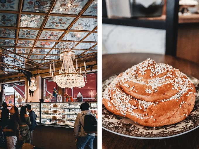 Wer eine typisch schwedische Fika machen will, ist in Göteborg besonders gut aufgehoben. Denn die Stadt in Westschweden gilt als Hauptstadt der Fika. Weil zu jeder Fika auch etwas Süßes dazugehört, solltest du dafür am besten im Café Husaren vorbeischauen. Es liegt auf der Hauptstraße des gutbürgerlichen Haga-Viertels und in einem typischen Backsteingebäude aus dem 19. Jahrhundert mit eindrucksvoller Glas-Decke. Hier befindet sich das Home of Hagabullen, wie die Kanelbullen aus diesem Stadtteil Göteborgs genannt werden. Die Zimtschnecken schmecken im Café Husaren nicht nur besonders gut, sie sind auch gigantisch groß – einen halben Kilo wiegt die Riesenschnecke hier. Aber keine Sorge: Du kannst die vegane Leckerei auch in kleineren Stücken kaufen.