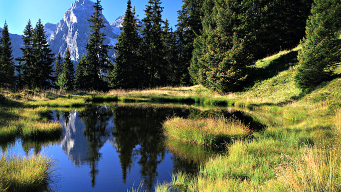Unweit der hübschen Stadt Meran erstreckt sich das sonnige Hochtal Deutschnonsberg. Hier kannst du auf idyllischen Wegen die vier Dörfer umwandern, immer vorbei an weiten Hochweiden und klaren Seen; oder mit dem Mountainbike steile Abhänge hinunter rasen. Doch zwischendurch wirst du sicher mehr als einmal eine Pause zum Staunen einlegen müssen. Denn die Aussicht auf das überwältigende Panorama der Bergspitzen zieht die Aufmerksamkeit immer wieder auf sich. An heißen Sommertagen lädt der Felixer Weiher zu einem erfrischenden Bad ein. Von St.Felix kannst du auf einem leichten Pfad zum dem natürlichen Waldsee spazieren, an dem sich farbenfrohe Libellen tummeln.