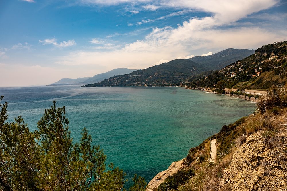 Morgens um 9 Uhr sitze ich im Bahnhofscafé von Ventimiglia, beobachte den Strom der Reisenden, der unaufhörlich zur Station drängt, und habe bei Café au Lait und Croissant das Gefühl, eine gute Entscheidung getroffen zu haben. Der erste Abschnitt ist spektakulär: Der Zug fährt direkt am Meer die Blüten-Riviera entlang durch Monaco bis Nizza. Nur ein schmaler Streifen Sand liegt zwischen den Schienen und dem Mittelmeer. Durch kurze Tunnel trödeln wir von Bucht zu Bucht, eine schöner als die andere: Segelboote auf türkisenem Meer, Palmenpromenaden und Küstenwege.